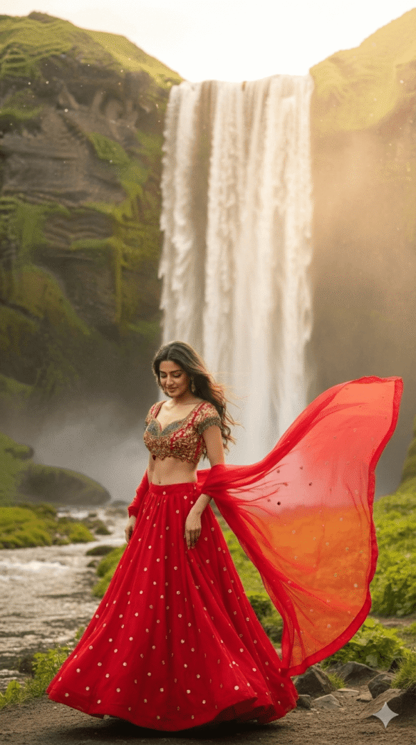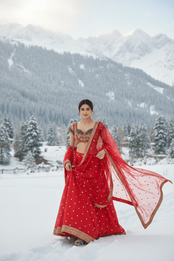 • 12 mtr. Flare lehenga with plain nylon net dupatta