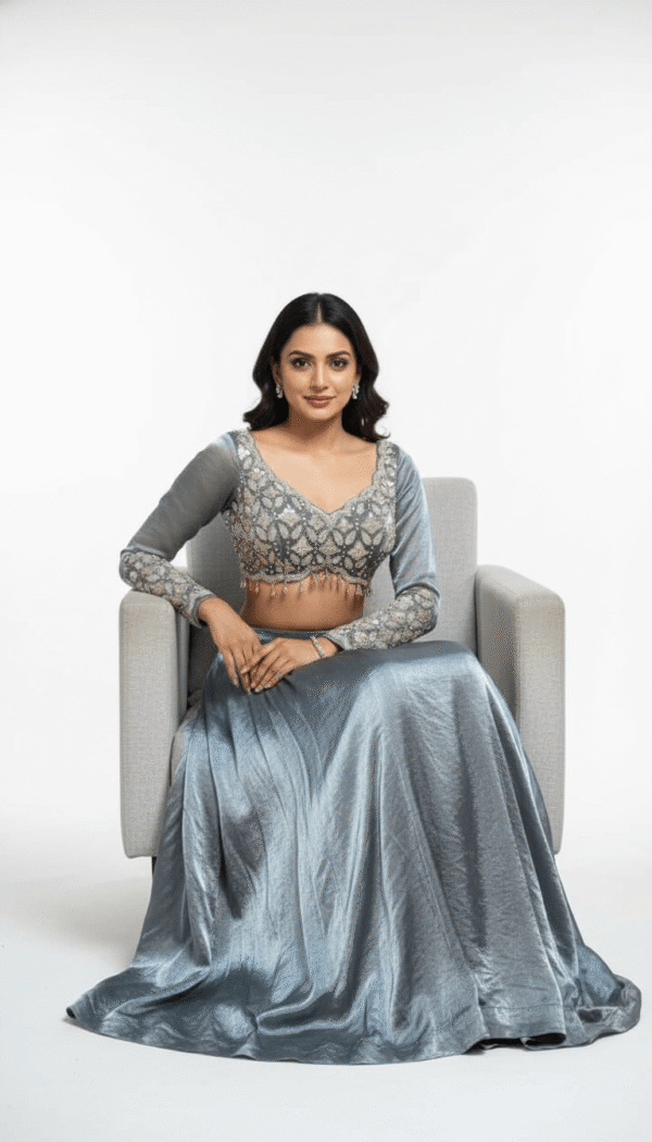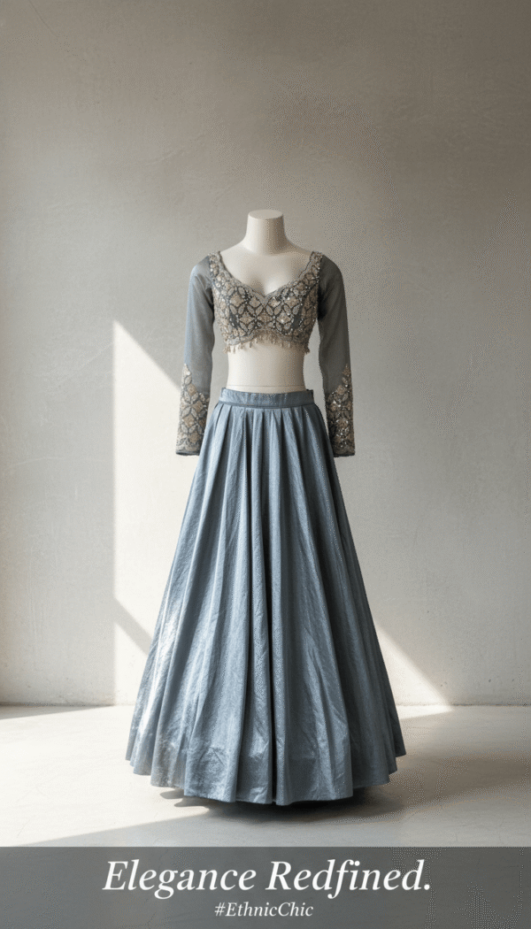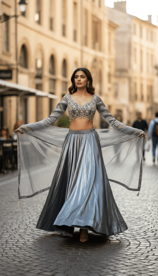 • 12 mtr. Flare lehenga with plain nylon net dupatta