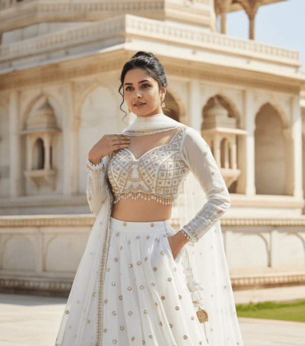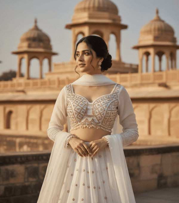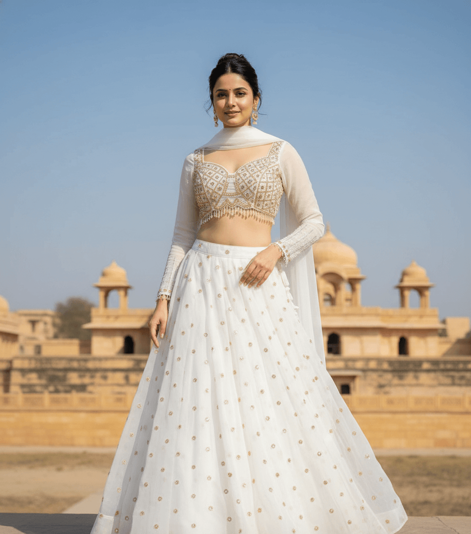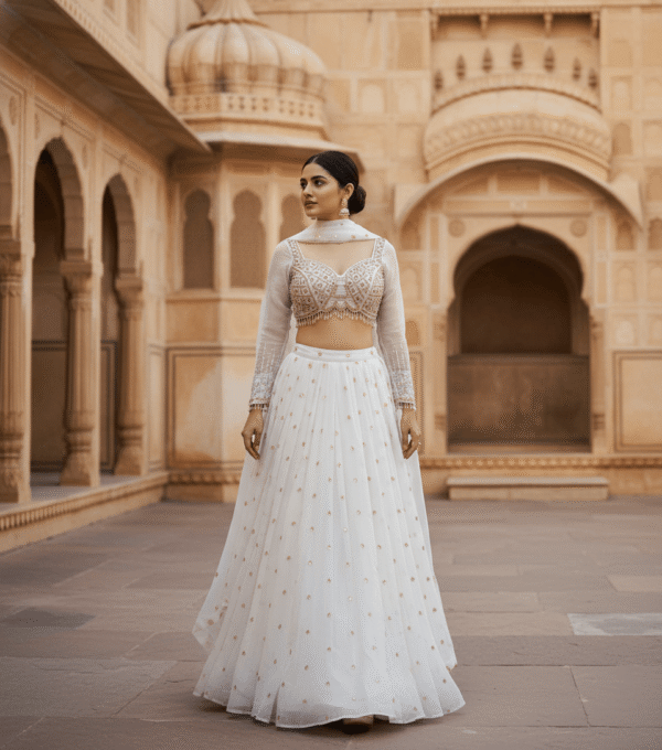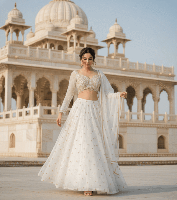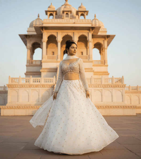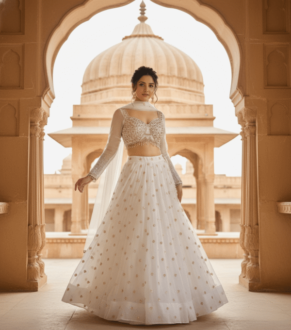 • 12 mtr. Flare lehenga with plain nylon net dupatta